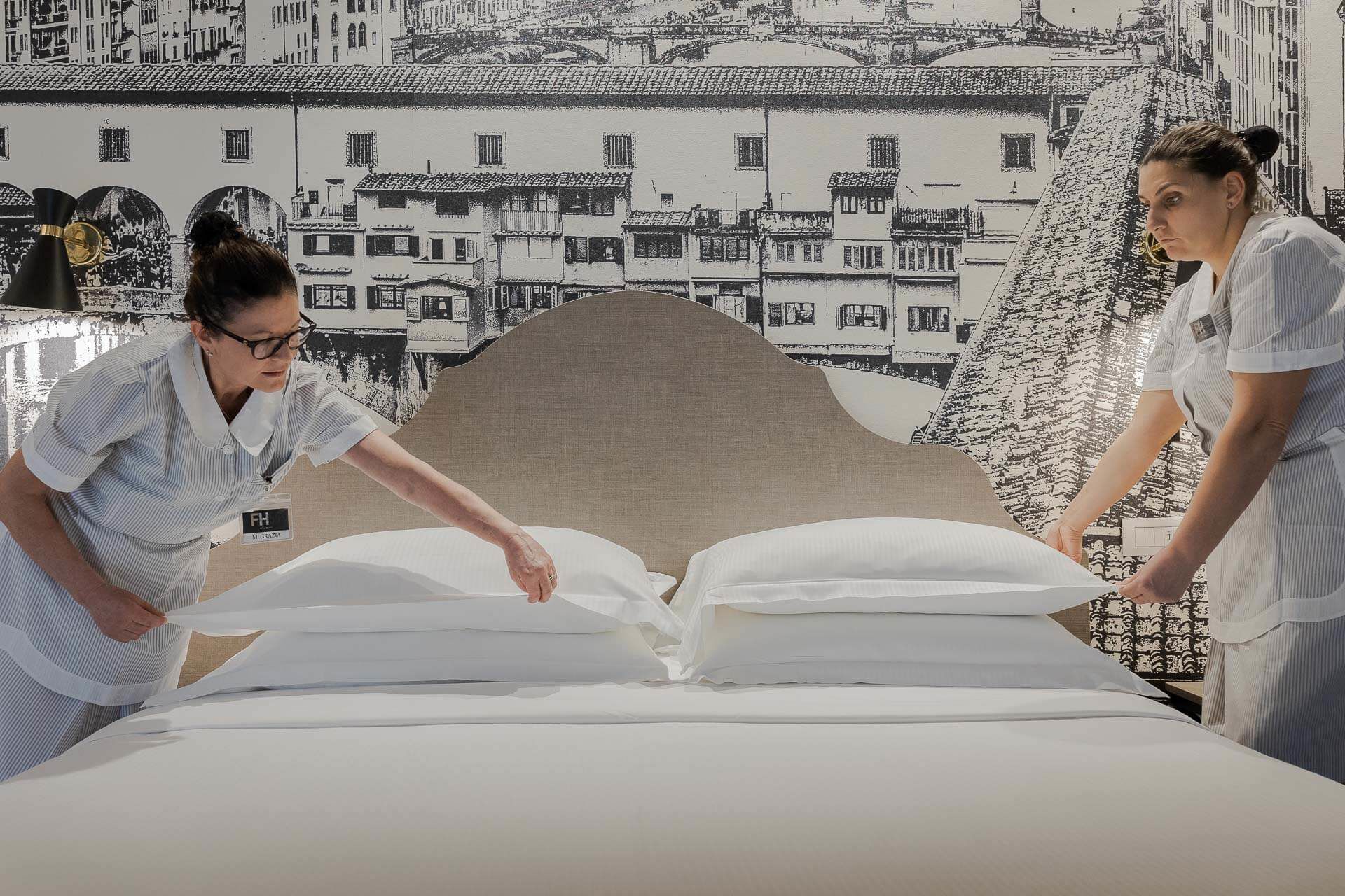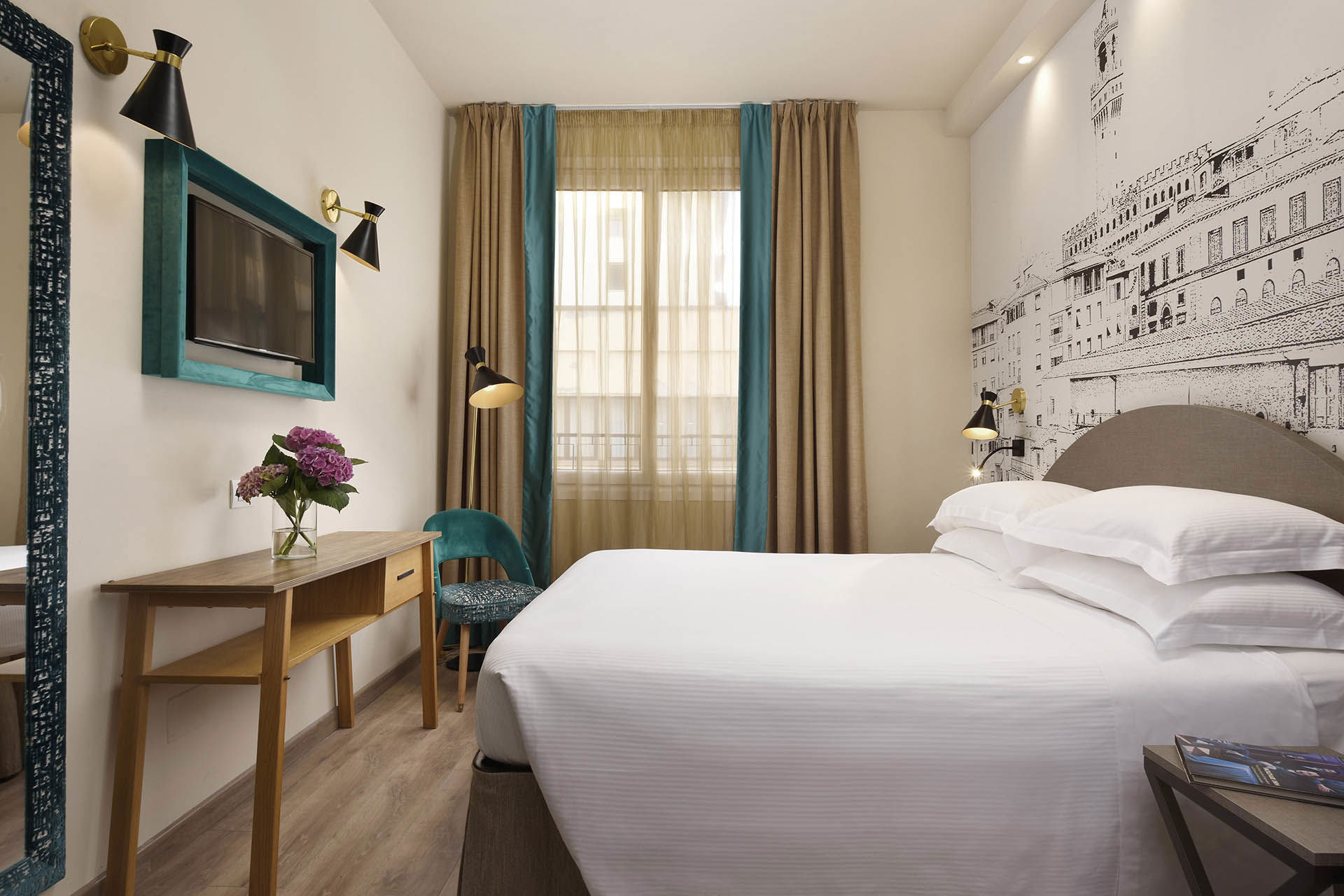 The décor of the rooms, with art and drawings of Florentine, open in the mind’s eye a window to the wonders of the city. The stay is made even more unforgettable by the soft, warm colors of the fabrics, furniture and parquet flooring.