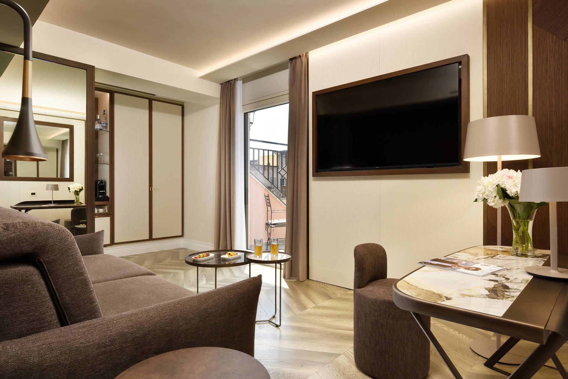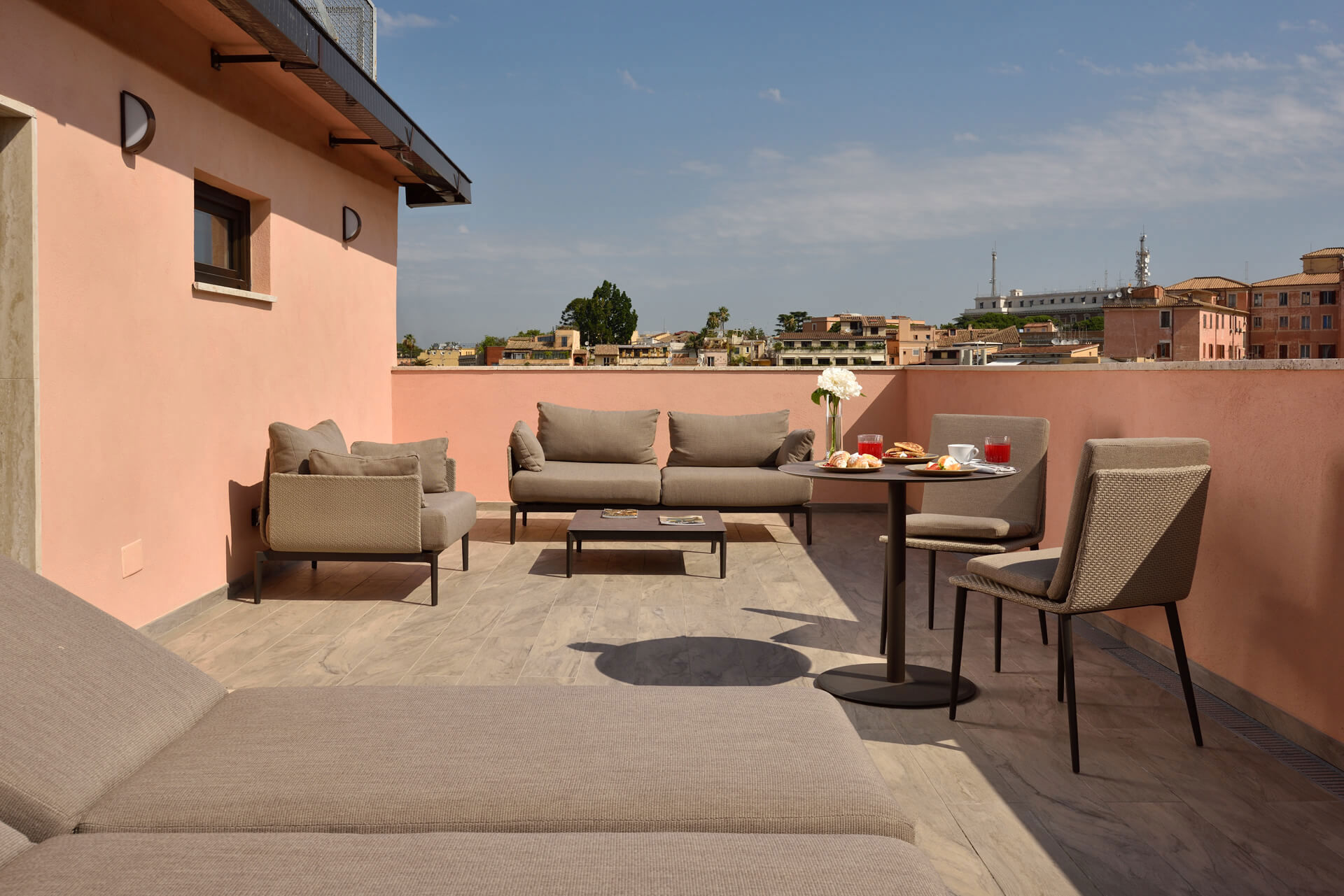 Una experiencia en Roma sin iguales, una estancia en nuestra Suite Presidencial ofrece todos los recursos posibles para una aventura revitalizante y lujosa. La Suite presidencial en el barrio Monti cuenta con un dormitorio acogedor, un salón de diseño minimalista y a la vez elegante, y una magnífica terraza con Jacuzzi y vistas panorámicas.